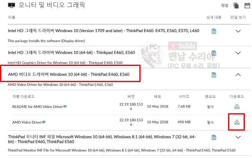 6) 그래픽의 경우도 README는 패스하고, AMD Video Driver만 다운, 설치하면 된다.