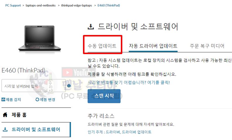 3) 그럼 해당 모델명에 대한 상세페이지로 넘어가는데, [수동 업데이트]를 클릭합니다.