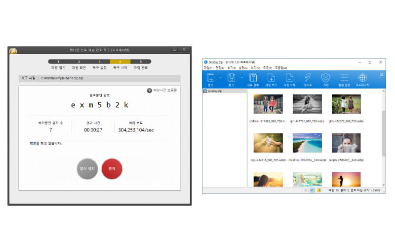 ③ 압축 파일의 암호를 최적화된 브루트 포스 검색을 통해 매우 빠른 속도로 찾아냅니다.