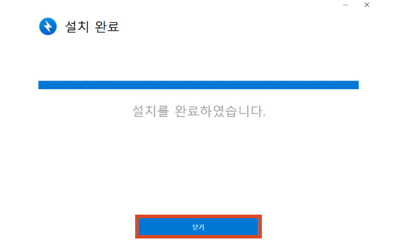 ④ 설치완료 안내 문구가 나오면 닫기를 클릭하여 설치작업을 끝내줍니다.