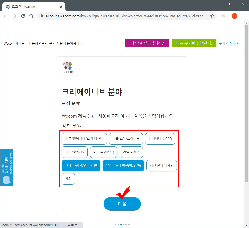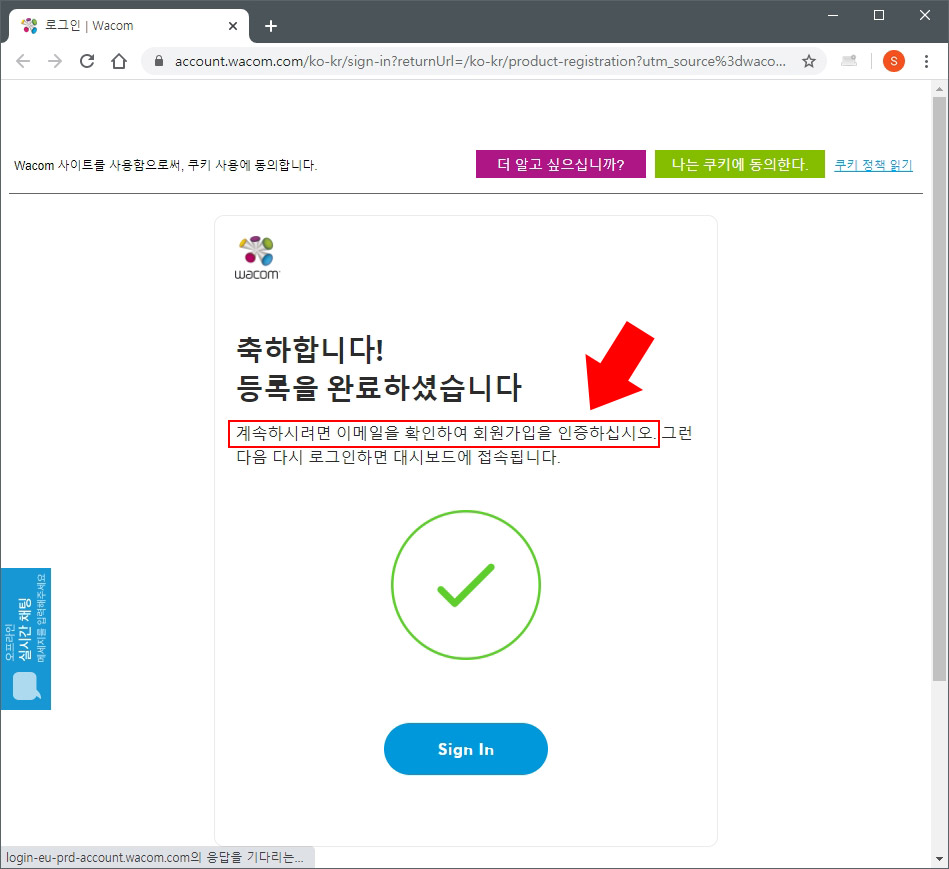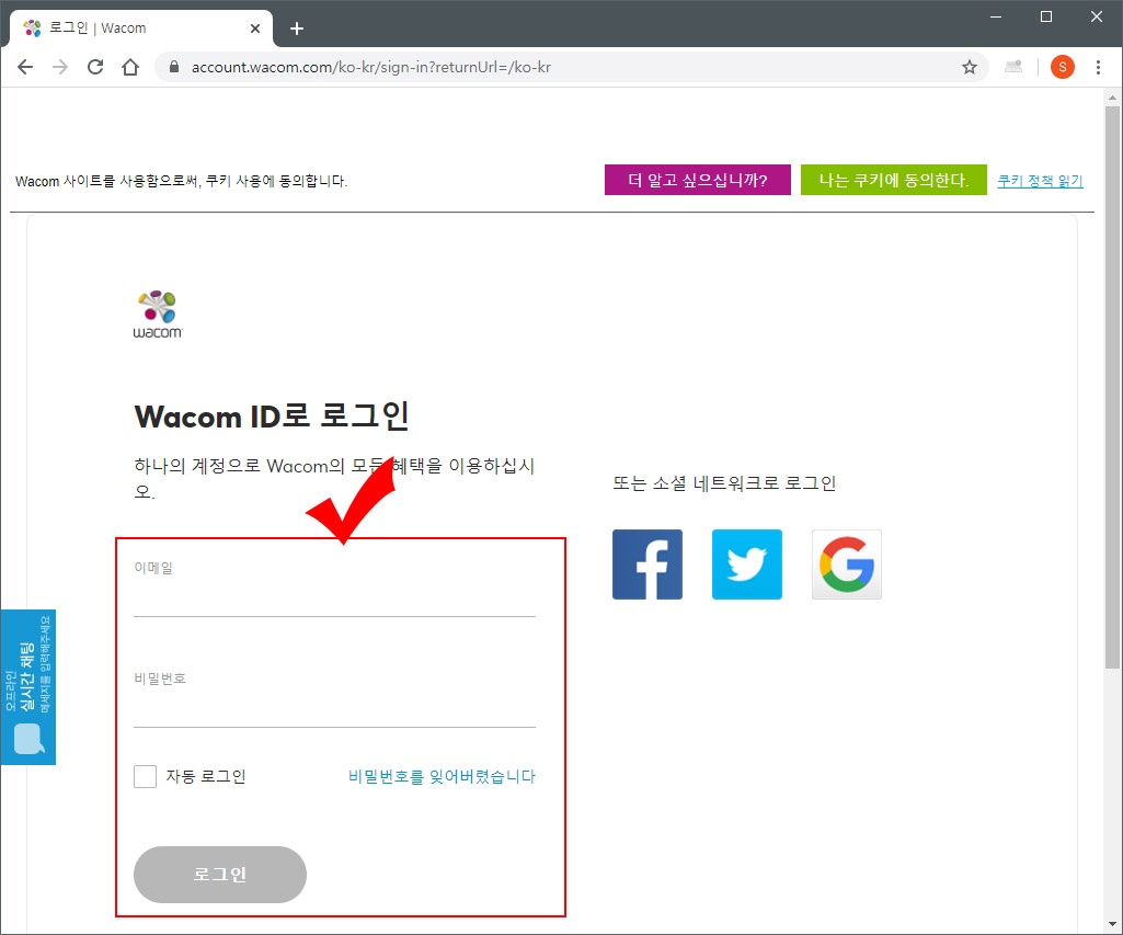 4. 다시 와콤 사이트 로그인을 해 줍니다.