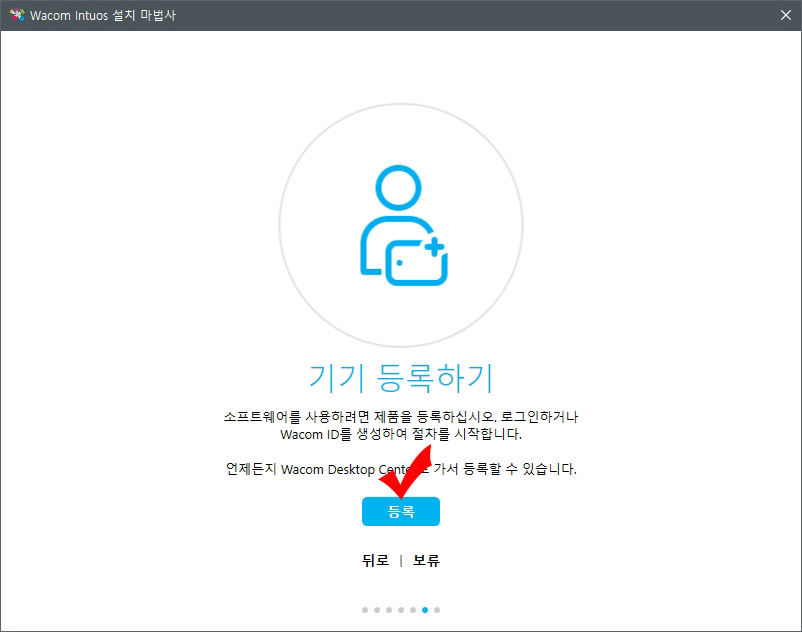 9. 와콤 타블렛 드라이버 설치 완료 후 추가로 기기 등록을 하시면 와콤에서 무료로 제공하는 그래픽 프로그램들을 사용하실 수 있습니다. 기기 등록을 위해 등록 버튼을 눌러 줍니다.