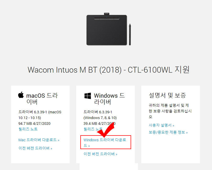 먼저 와콤 드라이버 다운로드를 위해 위 링크를 클릭하고 들어가세요.