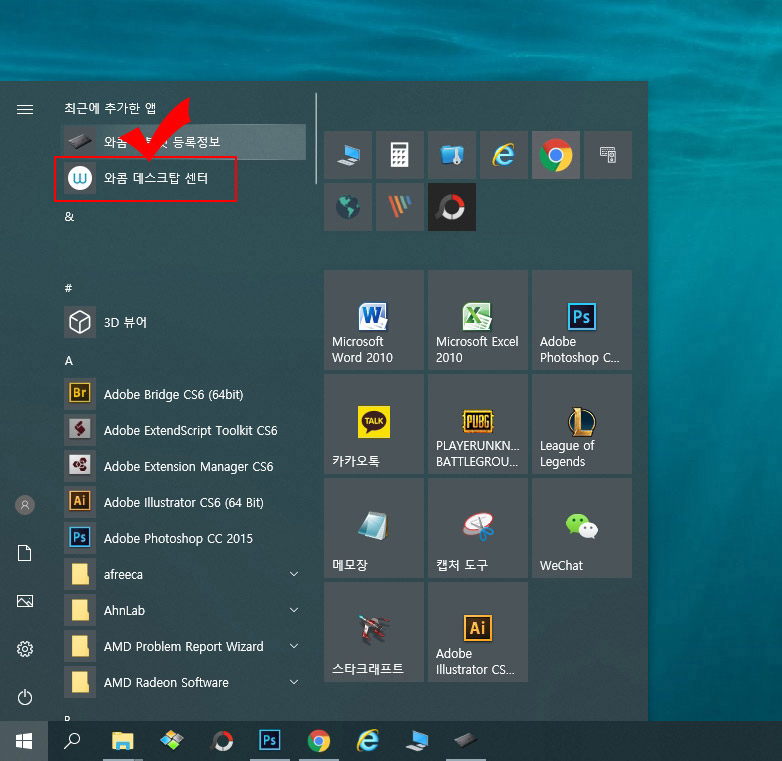 1. 드라이버 설치 후 와콤 타블렛 기기 등록이 제대로 되지 않았다면 "와콤 데스크탑 센터"를 실행시켜 줍니다.