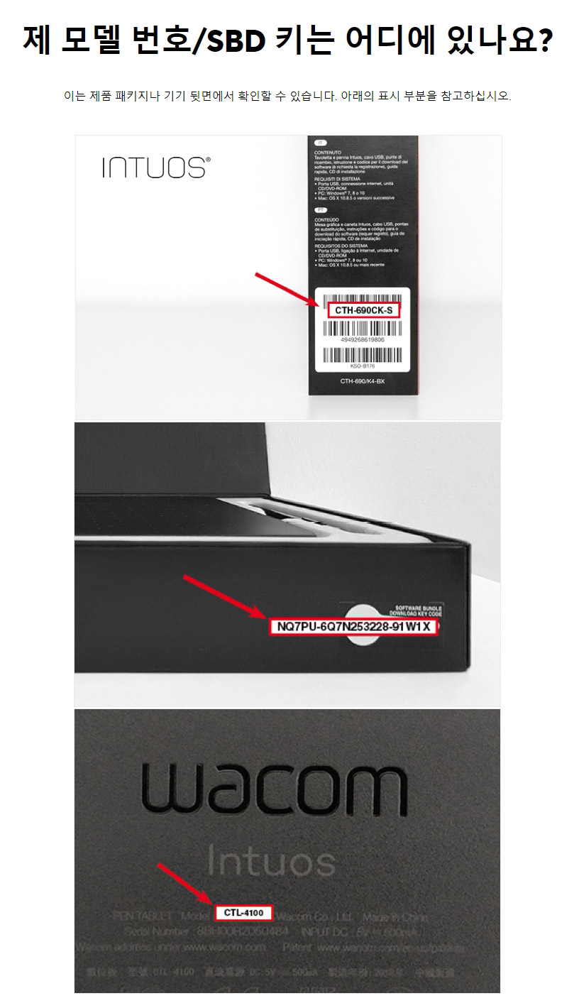와콤 모델 번호 SBD 키 찾기