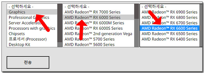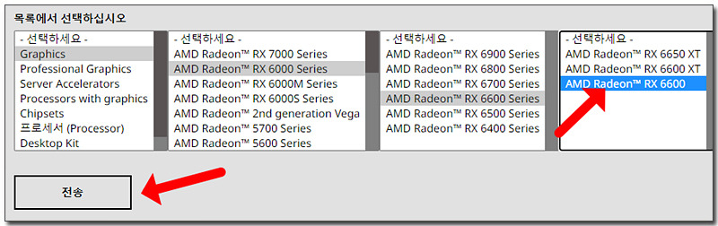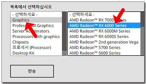 가장 먼저 Graphics를 선택하고 우측으로 메뉴가 나타나면 RX6000 Series를 선택해 주세요.